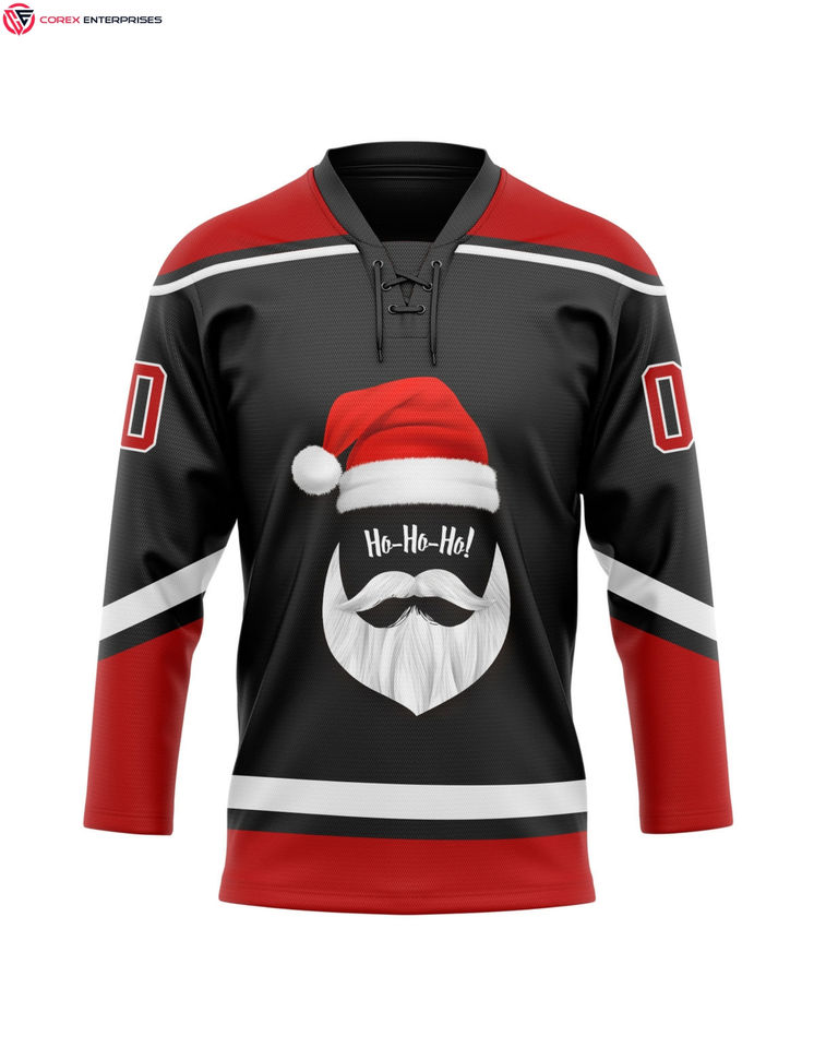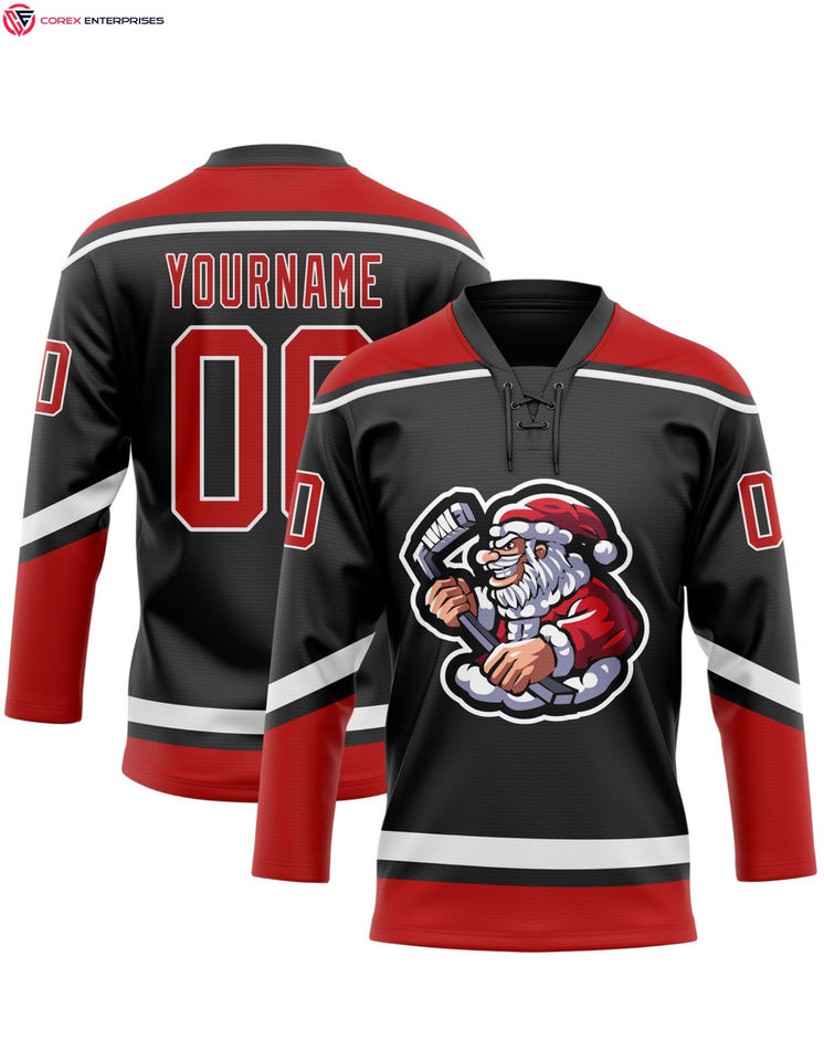 Custom Christmas Santa Claus Hockey Jersey with Red Green White Laces OEM Service Supply