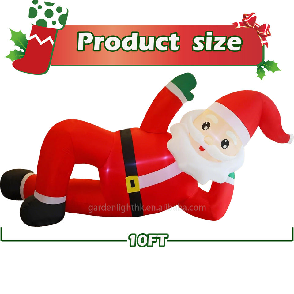 Custom Christmas Waterproof LED DC Eco-friendly Inflatable Outdoor Decor 10FT Giant Lying Santa Claus Lawn Yard Garden Holiday