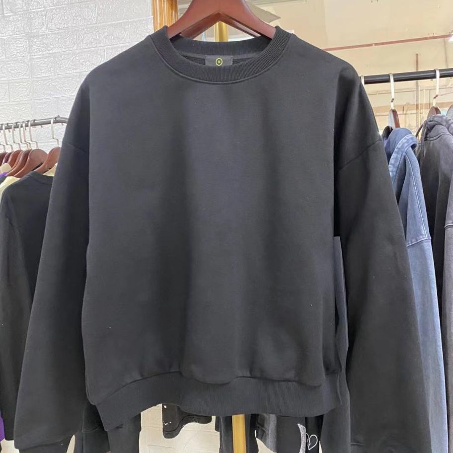 Custom Classic 100% Cotton Fleece Crewneck Oversized Eco-Friendly Spring Solid Black Pullover Sweatshirt