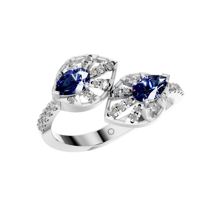 Custom Classic 925 Sterling Silver Pear Cut Natural Sapphire Gemstone Engagement Ring Rhodium Plating for Women Prong Setting