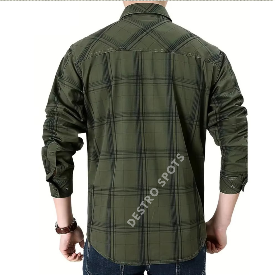 Custom Classic Checkered Men's Flannel Plaid Shirt Casual Button up Long sleeved Shirts 2 Chest Pockets Adjustable Cuff