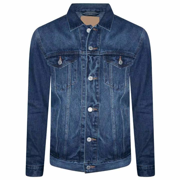 Custom Classic Dark Blue Men Denim Jacket Slim Fit Vintage Style Zipper Closure Coated Stand Genuine Leather Hooded Oem Orders