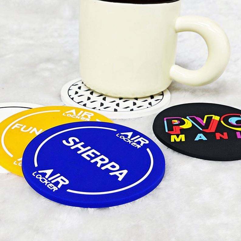 Custom Classic Round PVC Rubber Coasters Soft Colorful Coffee Cup Pad Debossed Silicone Coaster with Custom Design