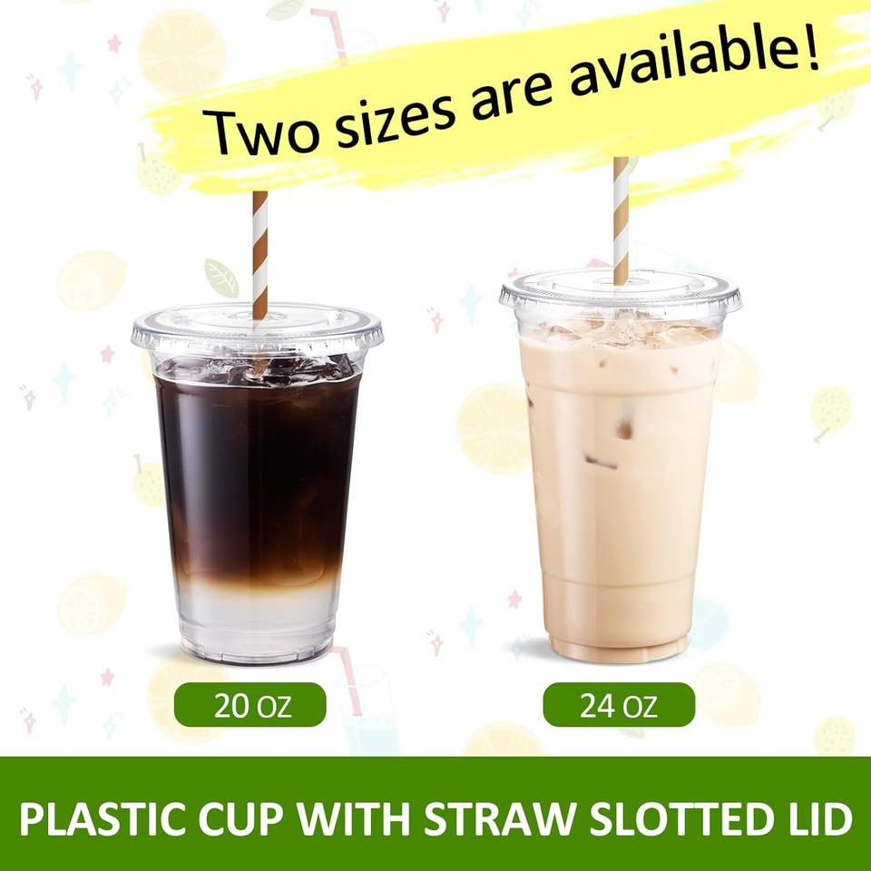 Custom Clear PET Plastic Single Wall Disposable Cups for Juice Beverage Milkshake Bubble Tea Boba Coffee with Lids