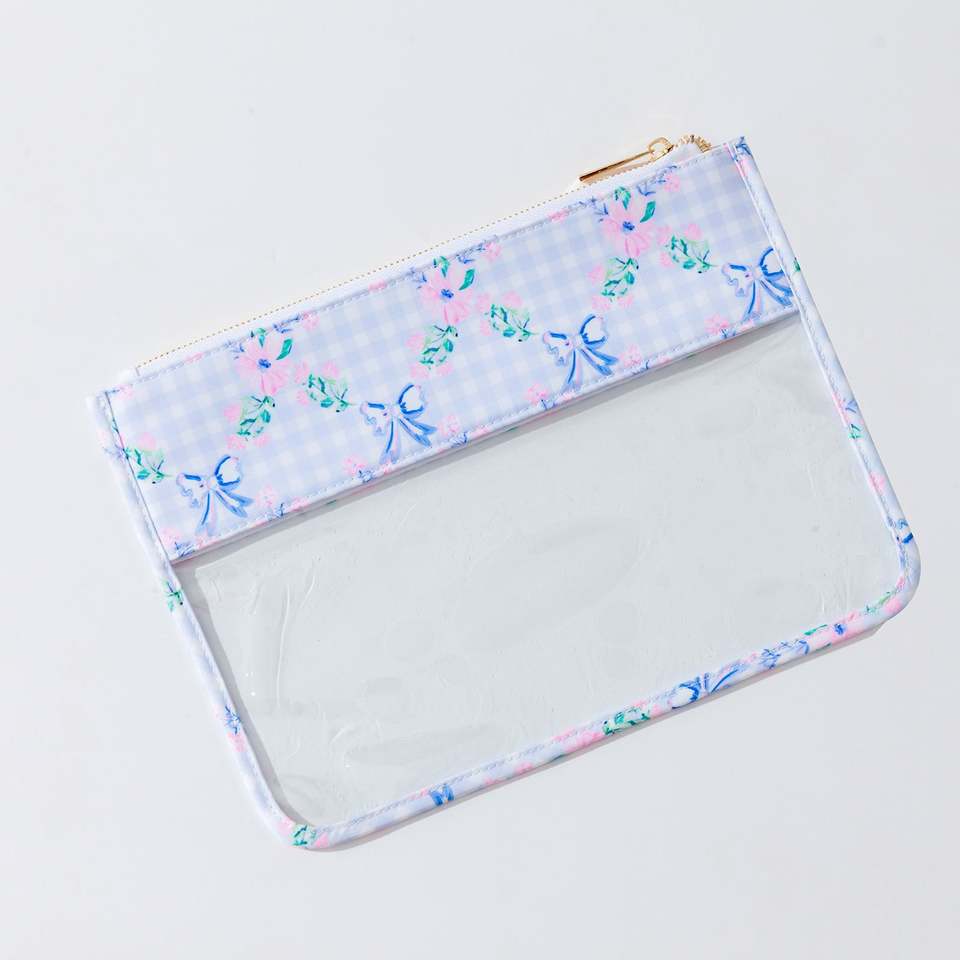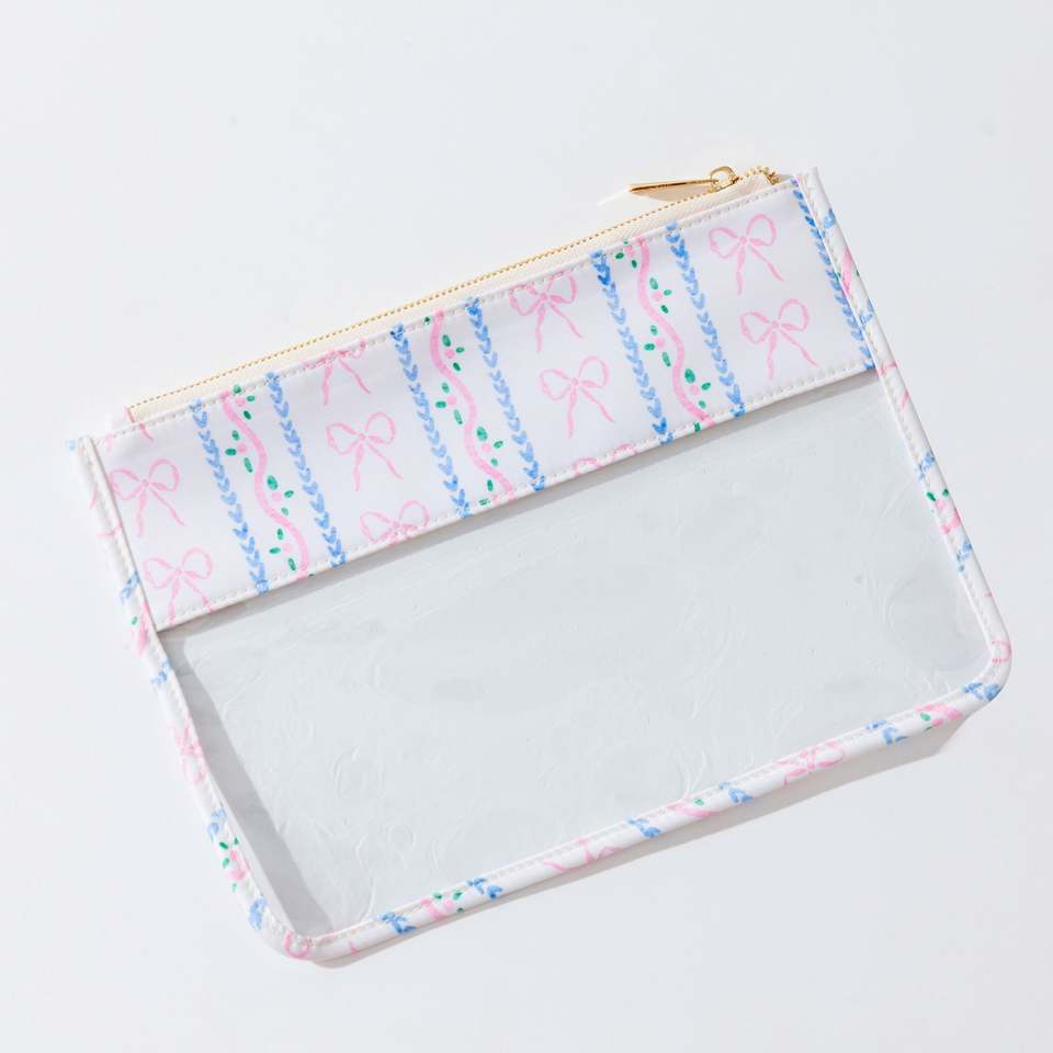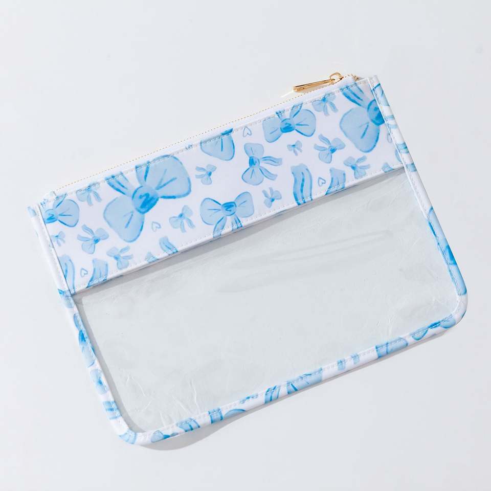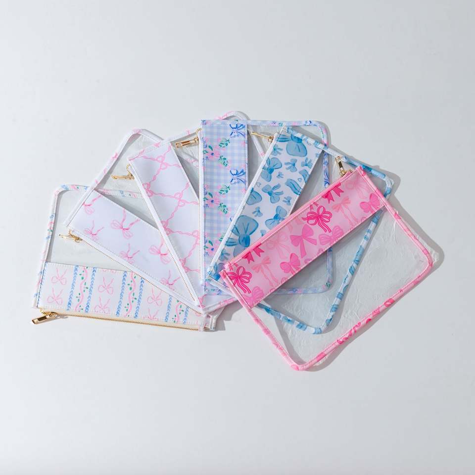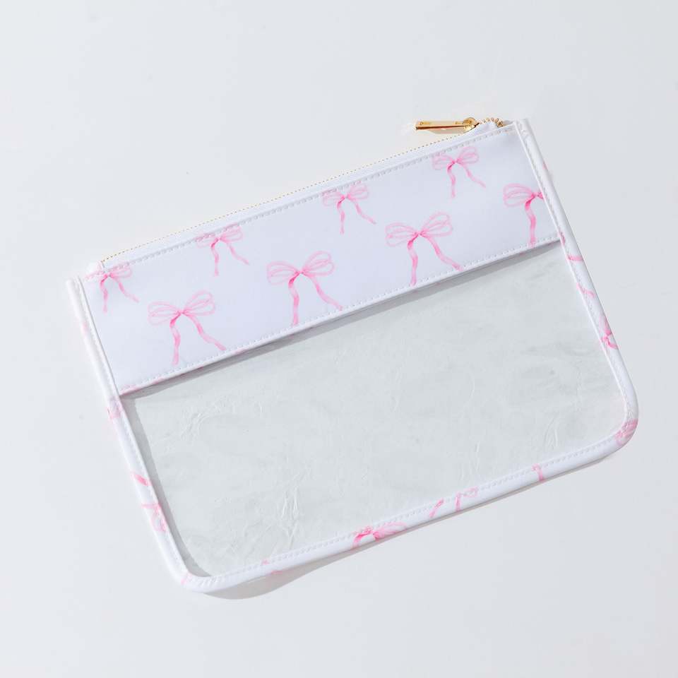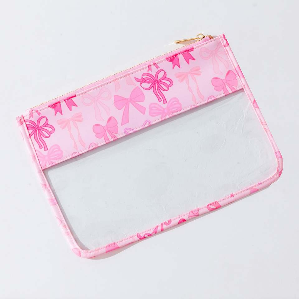 Custom Clear PVC Zipper Portable Lightweight Durable Makeup Bags Bow Print Eco-Friendly Travel Cosmetic Organizer Women