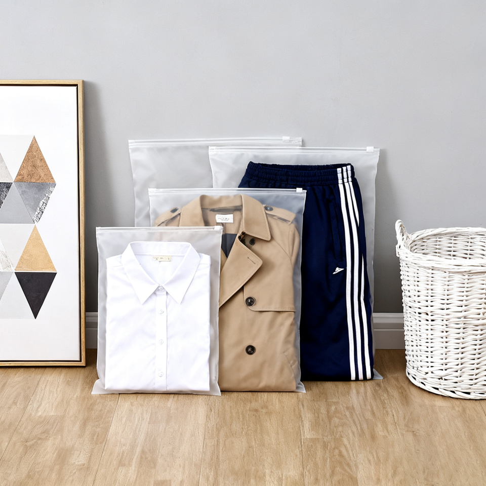 Custom Clothes T-Shirt Transparent Plastic Packing Bags Resealable Glossy Frosted Ziplock for Clothing