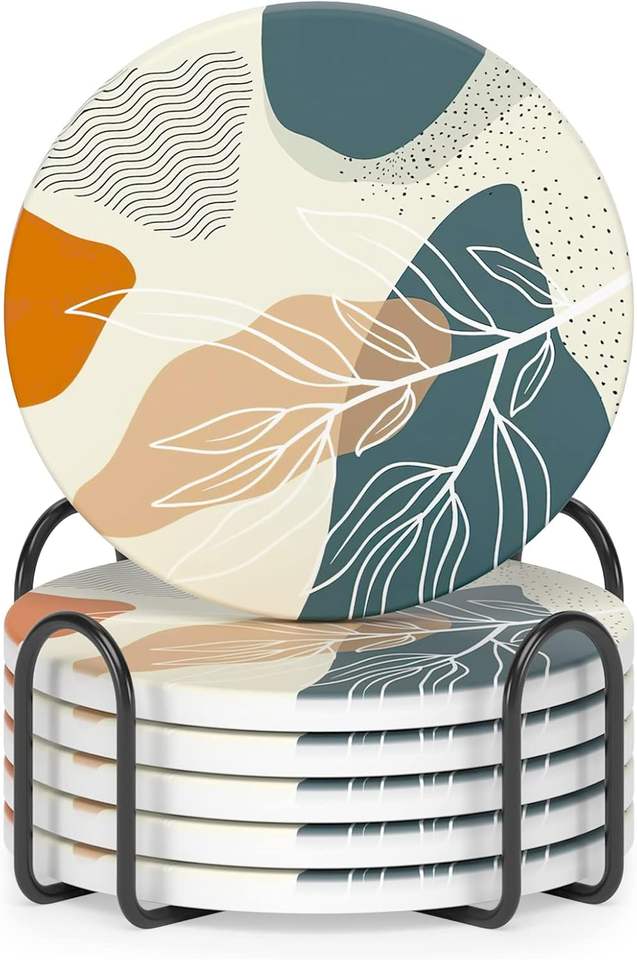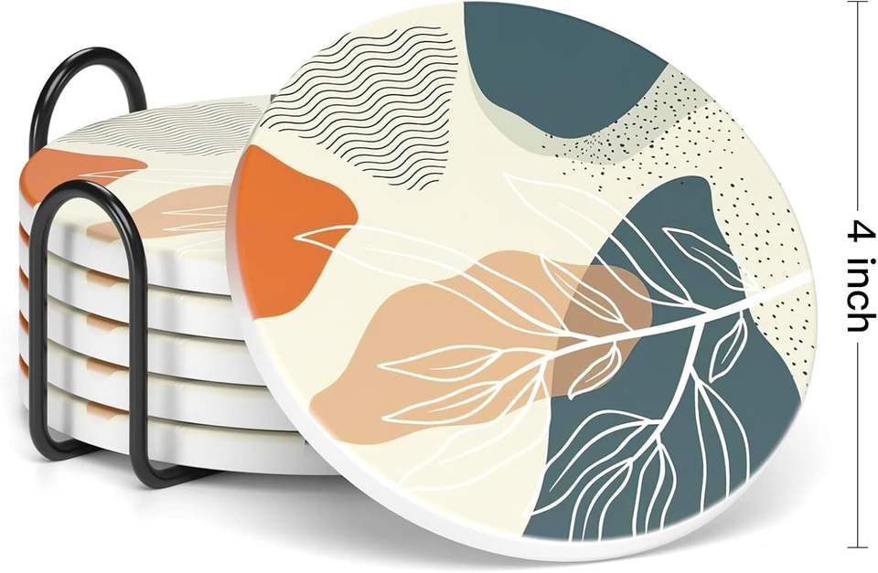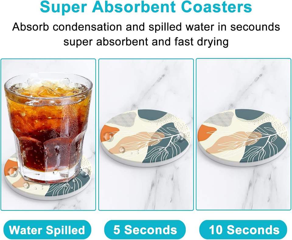 Custom Coasters With Cork Base Absorbent Coasters With Holder Set Stone Ceramics Coasters for Drinks Customized Printed