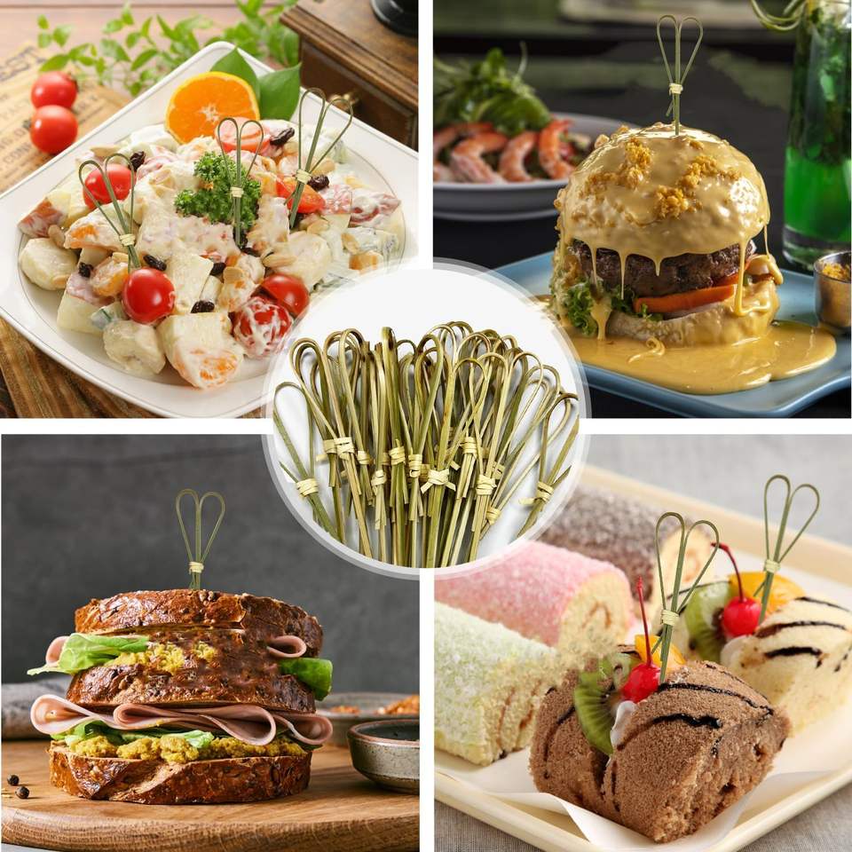Custom Eco-Friendly Disposable Cocktail Toothpicks with Knot Skewers Bamboo Design