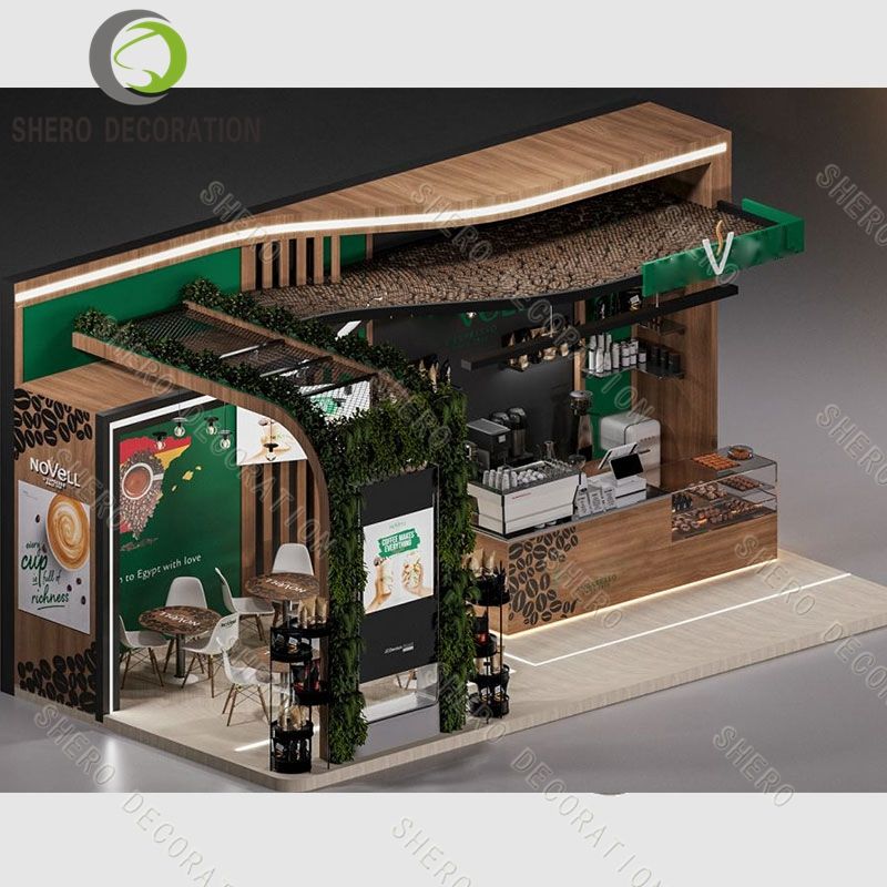 Custom Coffee Counter Display Coffee Shop Decoration Wooden Display Stand Coffee Kiosk