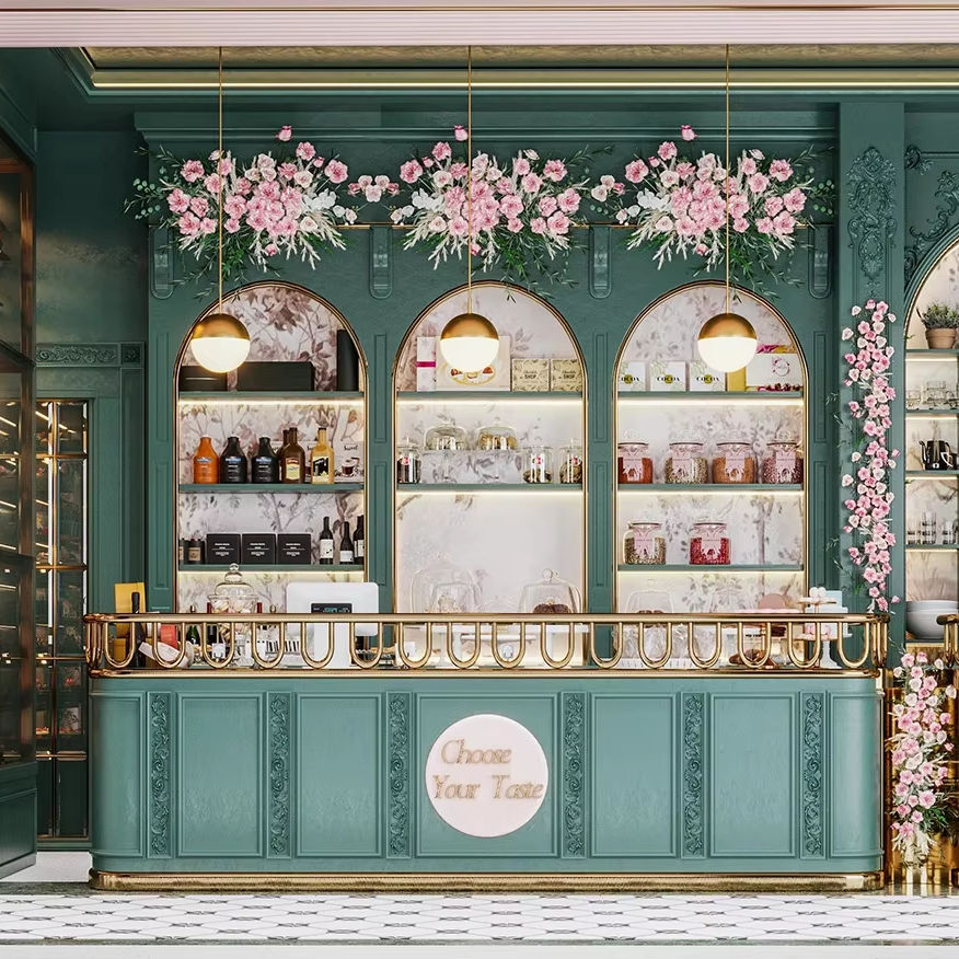 Custom Coffee Shop Bar Counter Design Commercial Restaurant Table Custom Wooden Top Casher Cafe Counter