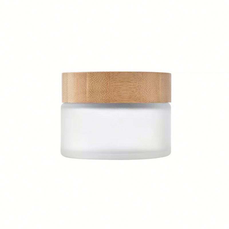 Custom Color Frosted Cosmetic Jar Bamboo Body Butter Cream Glass Jar With Bamboo Lid