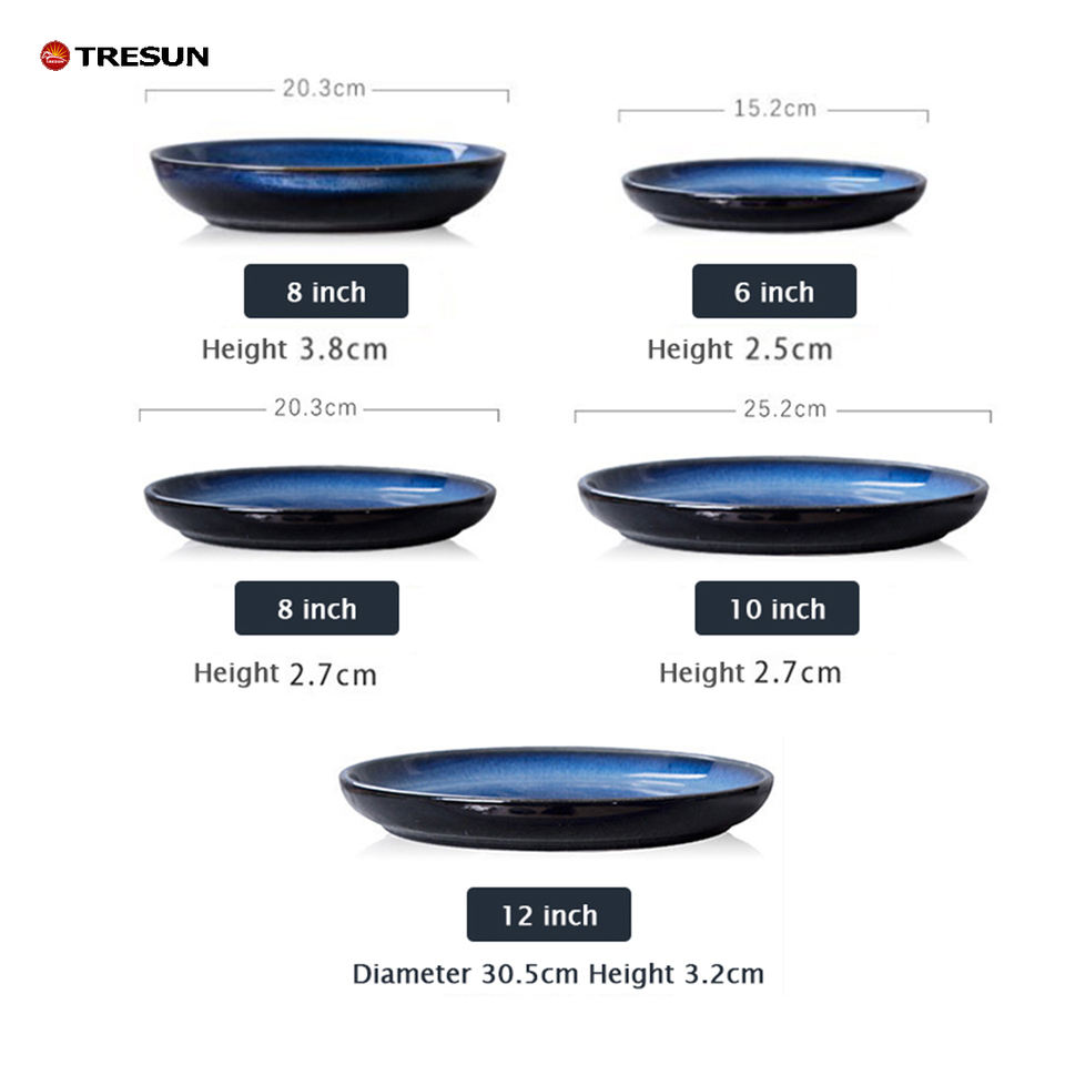 Custom Color Glaze Glossy Plates Round Ceramic Bakeware Baking Dish Ceramic Flat Plate Porcelain Dinner Plate
