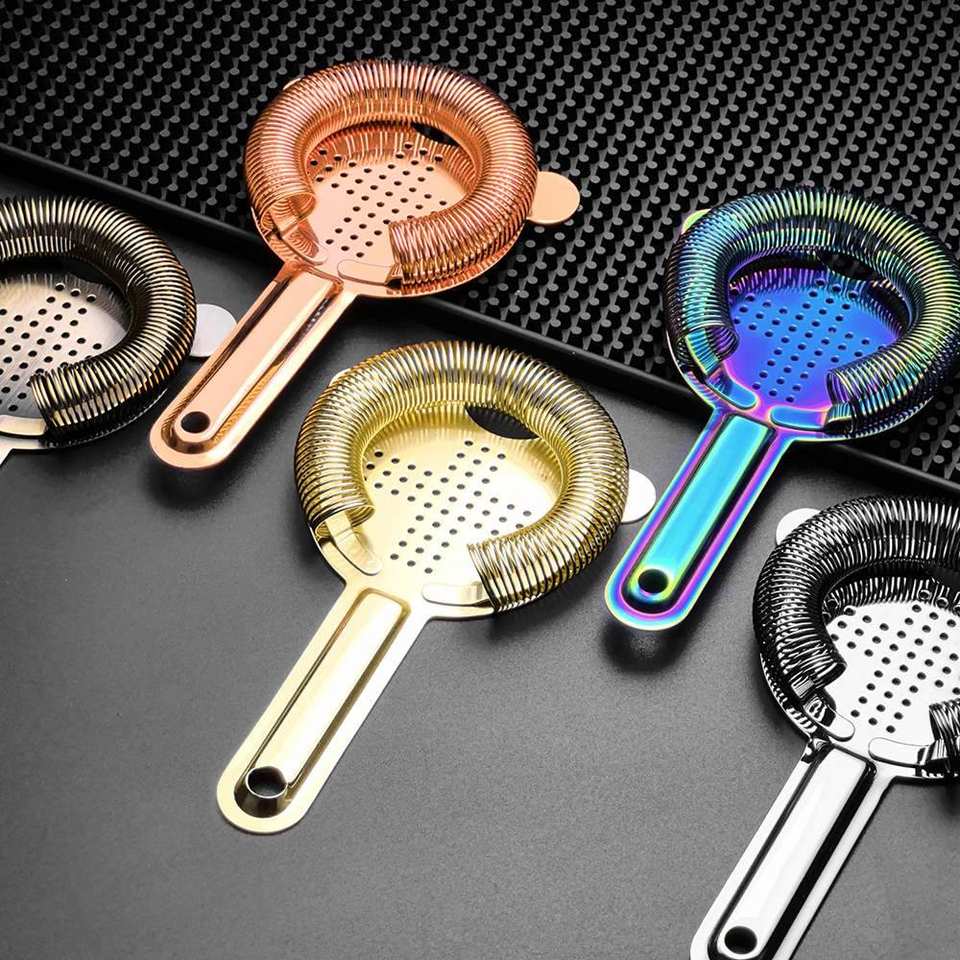 Custom Color PVD Coating Mirror Polished Dishwasher Safe 2 Prong Durable Bartender Cocktail Wine Mixing Bar Hawthorne Strainer