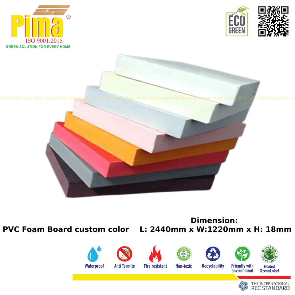Custom Color Pima Brand WPC PVC Foam Board Sheet Model 20250514 18mm Thickness 0.6 G/cm3 Density Furniture Bathroom