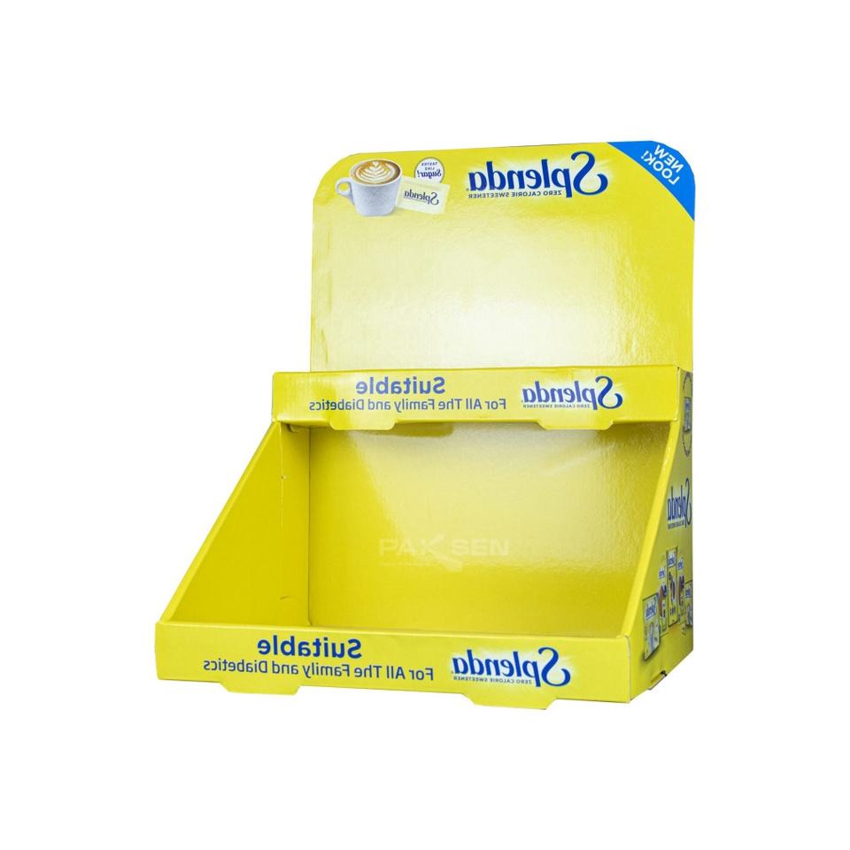 Custom Color Printed Foldable Eco-Friendly 2 Tier Counter Top Corrugated Cardboard Snack Display Stand for Coffee Drinks