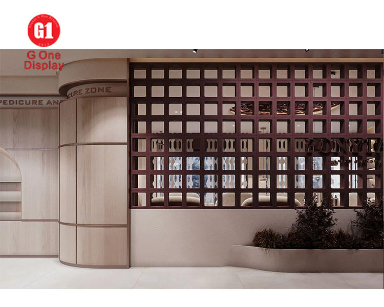 Custom Commercial Cosmetic Display Furniture OEM Salon Showcase Design Wig Display Stand Beauty Supply Store Fitting