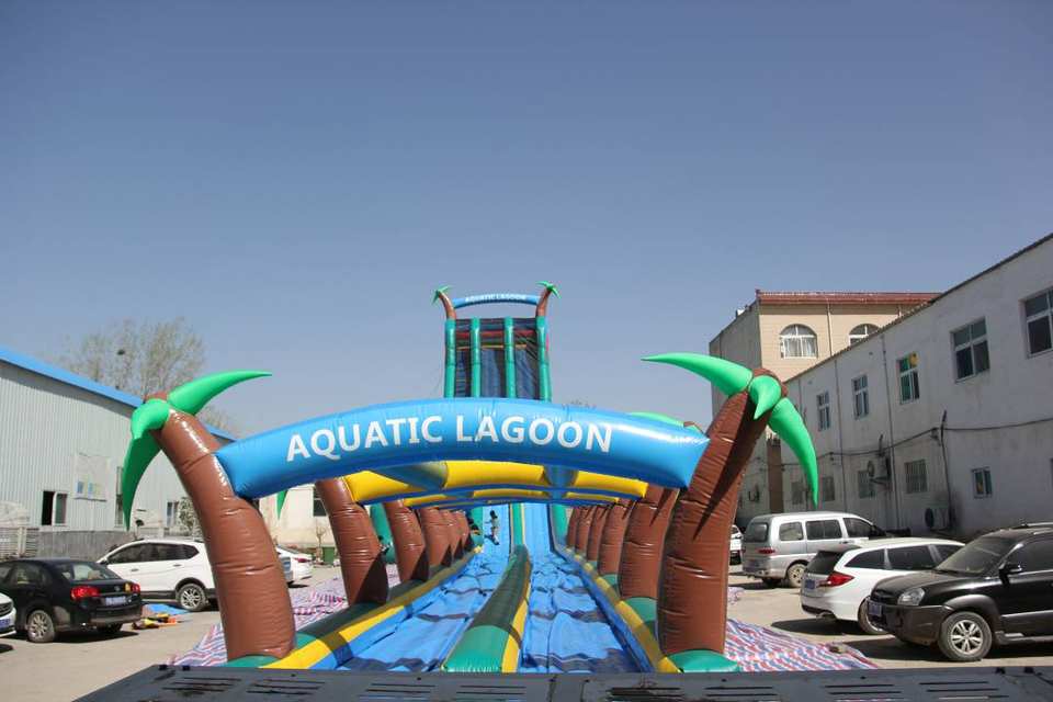 Custom Commercial PVC Inflatable Dry Shark-themed Water Slide Super Long Tropical Rainforest Slide