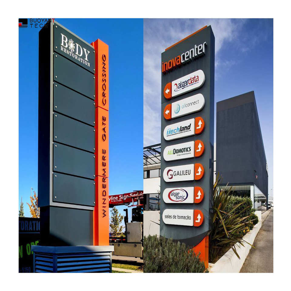BUOYANT Custom Indoor LED Totem Sign Commercial Illuminated Wayfinding Pylon Sign Business Steel Frame Acrylic Material Outdoor