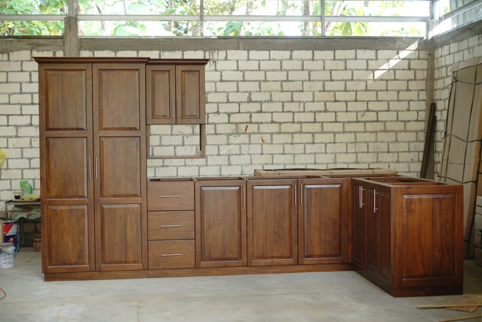 Product name:Contemporary Solid Teak Wood Modular L-shape kitchen cabinets Set