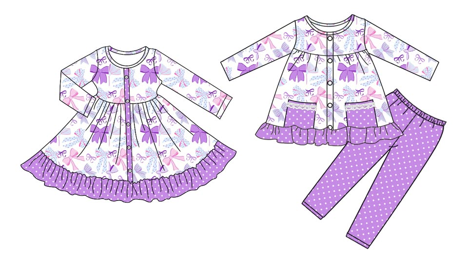 Custom Coquette Bows Little Girls Tunic Shirt Jogger Pants Clothes Outfits Girls Ruffles Dress Sister Matches Baby Clothes
