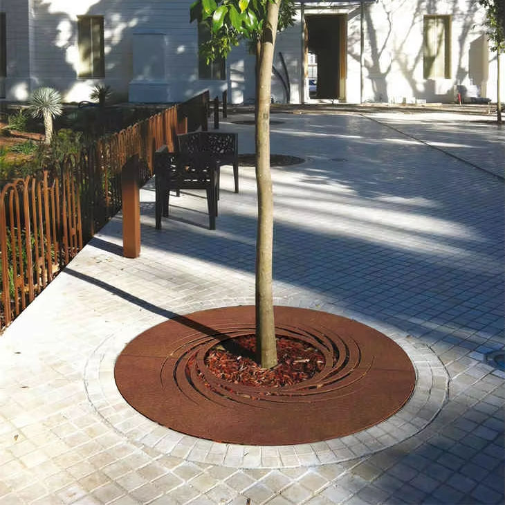 Custom Corten Steel Art Deco Weather Resistant Freestanding Tree Grilles Grates for Road Safety Outdoor Use