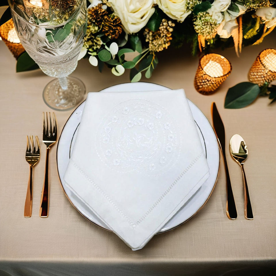 Custom Cotton Cloth Napkin Embroidered Tiny White Flower Dinner Napkin Hemstitch Table Napkins Home Hotel Events Wedding
