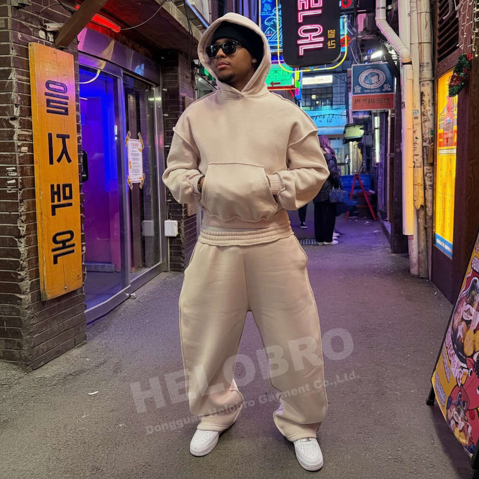 Custom Cotton French Terry Fleece Heavyweight Embroidery Hoodie and Sweatpants Sets Hoodie Unisex Sweatsuit Men Tracksuit