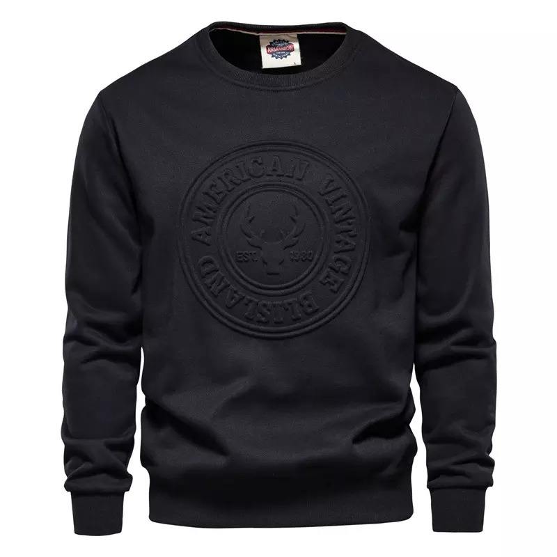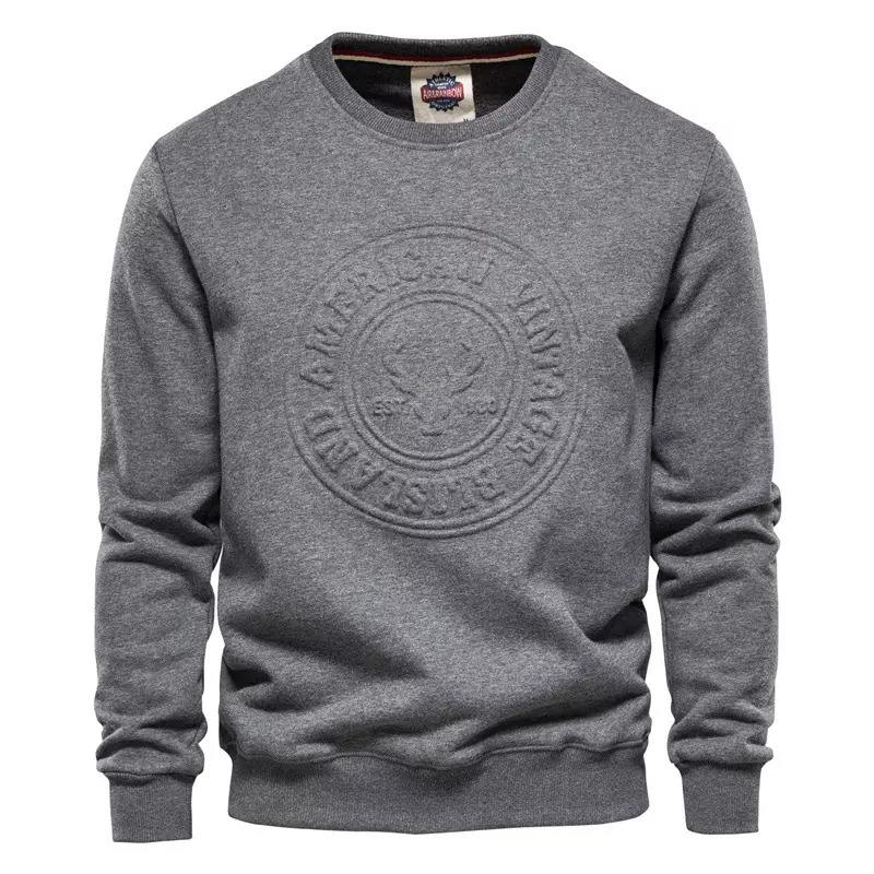 Custom Cotton French Terry Plain Bulk Streetwear 3d Crewneck Oversized Embossed Sweatshirt for Men