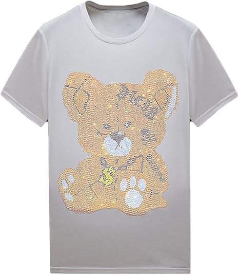 Custom Cotton Rhinestone Neck Short Sleeve Plus Size Men's T-shirts Drop Shoulder White Rhinestone T Shirt for Men