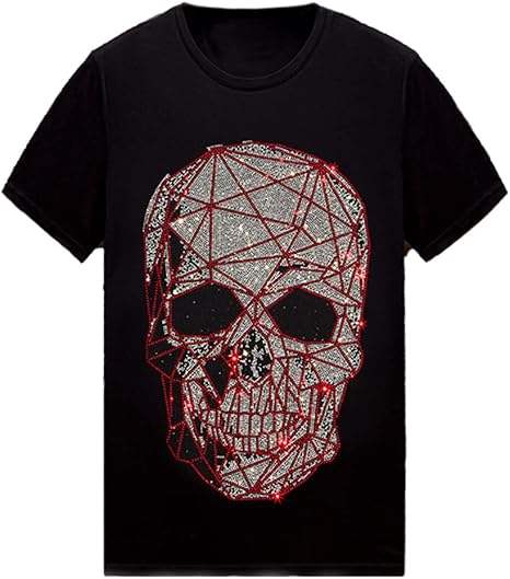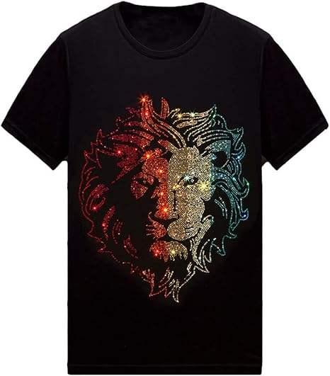 Custom Cotton Rhinestone Neck Short Sleeve Plus Size Men's T-shirts Drop Shoulder White Rhinestone T Shirt for Men