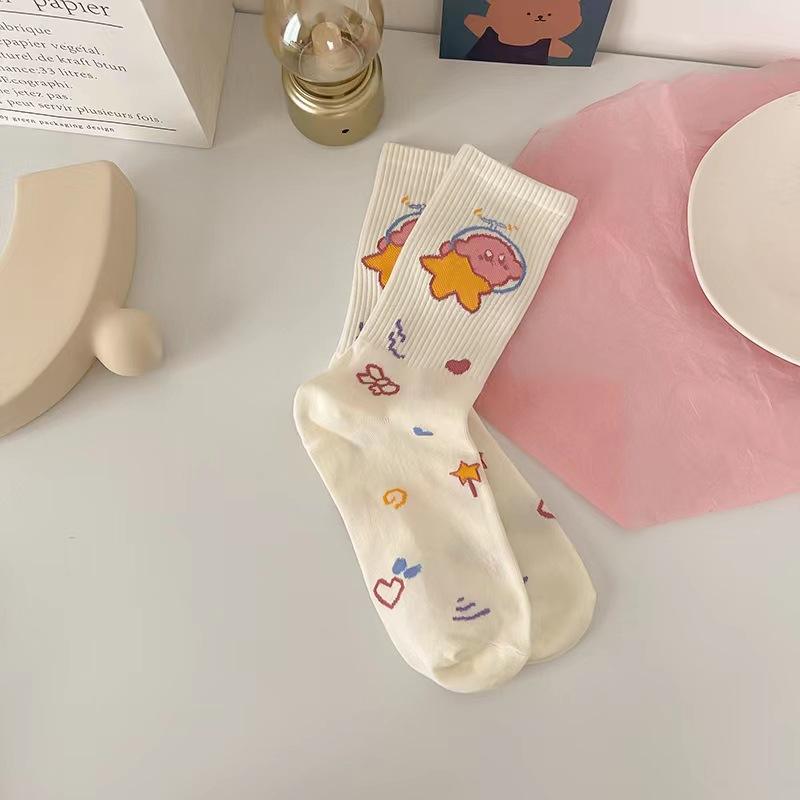 Women's Custom Cotton Crew Socks with Cute Cartoon Design Soft Breathable Casual Sports Socks ODM Factory Wholesale