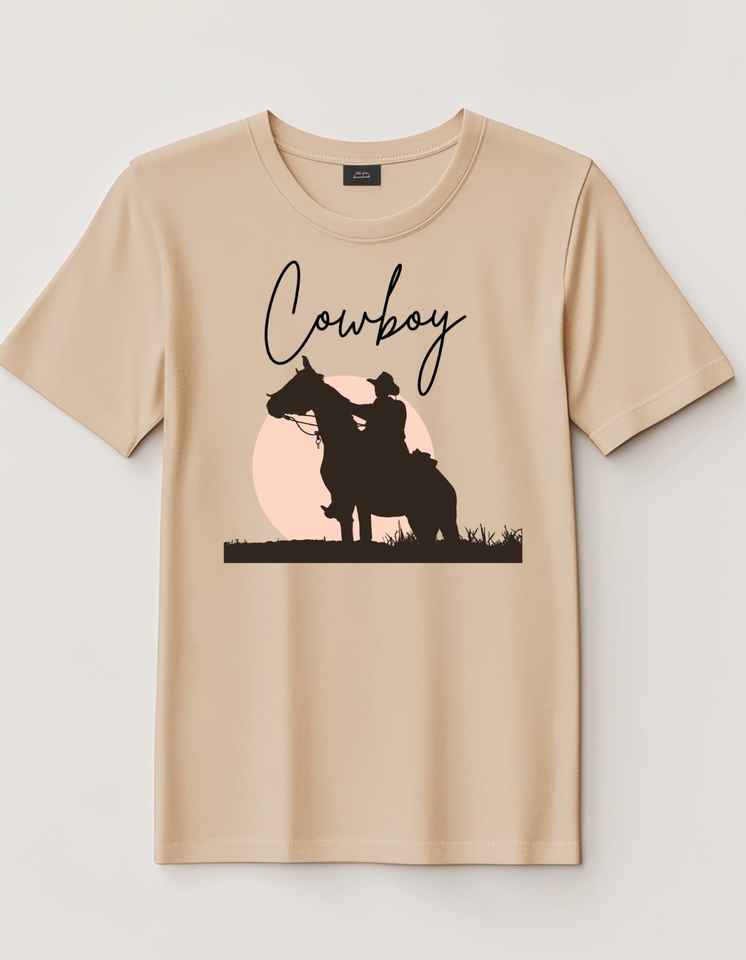 Custom Cotton T-shirt moonlit rider t shirt cowboy silhouette t shirt Print T-shirts