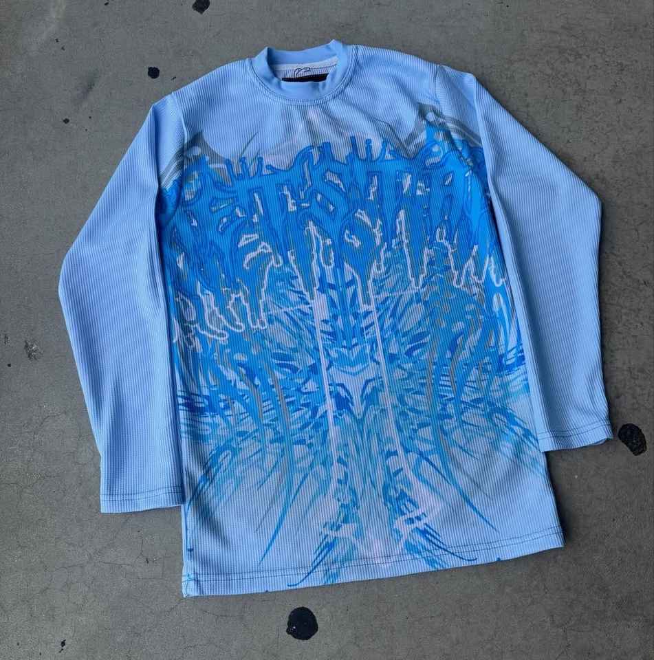 Custom Cotton Thermal Long Sleeve T Shirts Vintage Screen Print Oversized Distressed Double Layer Long Sleeve T-shirt for Men