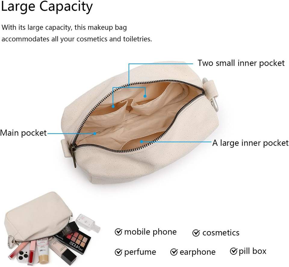 Custom Cotton Travel Waterproof Zipper Cosmetic Makeup Bag