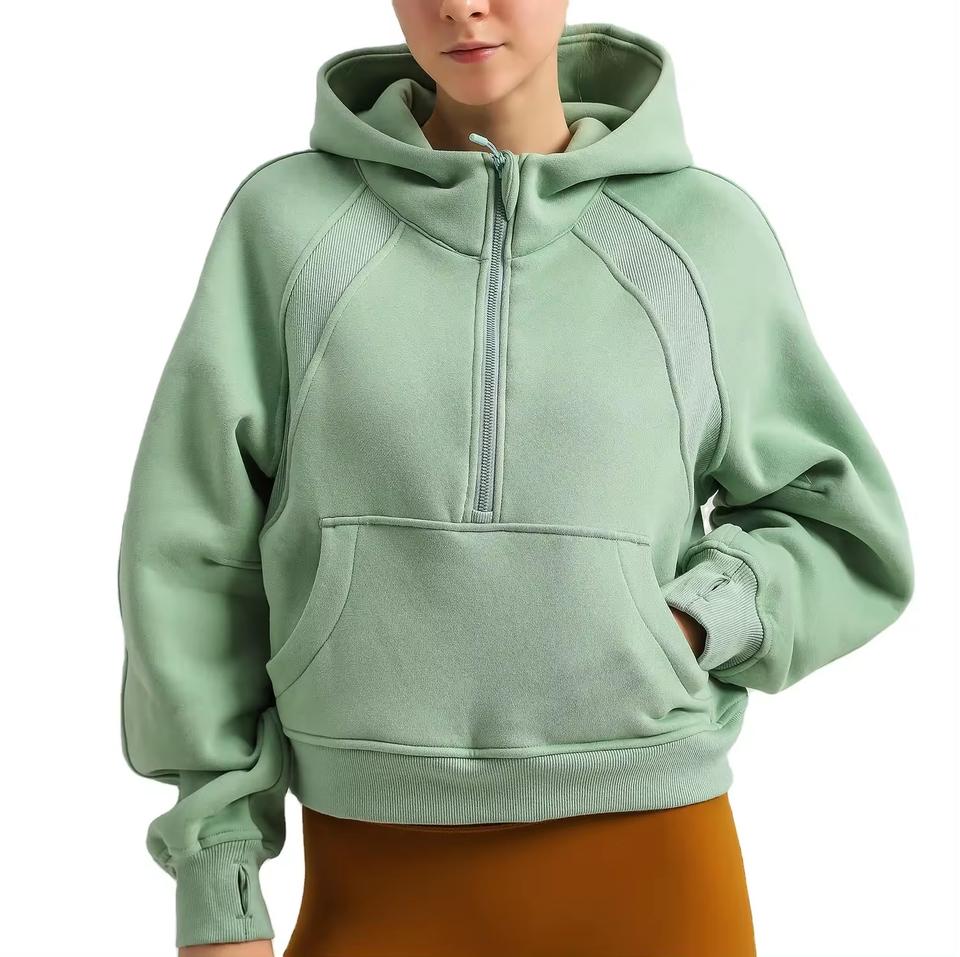 Custom Women's Winter Cotton Hoodie Casual Zip-up Streetwear Oversized Plain Design Long Length Front Logo Position-Wholesale