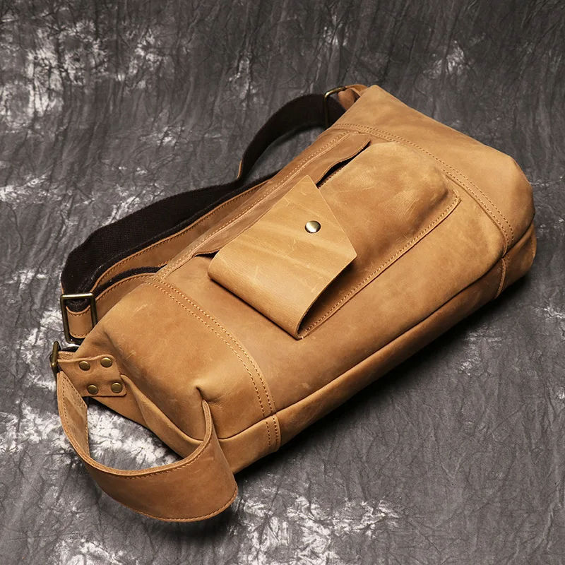 Custom Cowhide Leather Men Small Shoulder Crossbody Chest Phone Bags Side Sling Bags for 6.7 Inch Phone