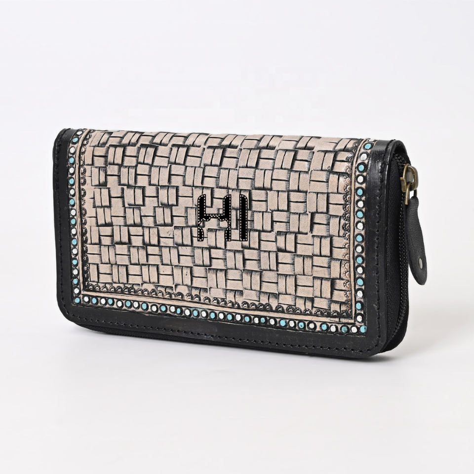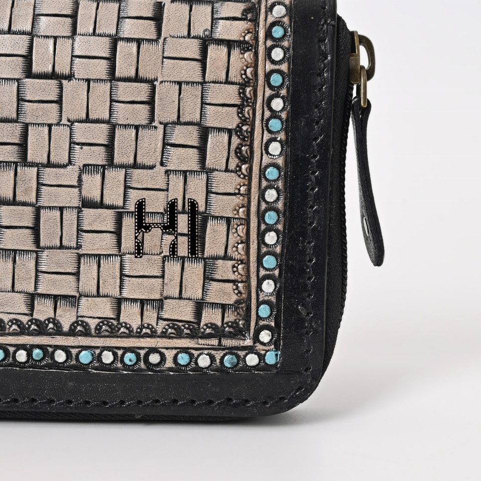 Design:plus basket tooled design with dotted colorful edge tooling design
