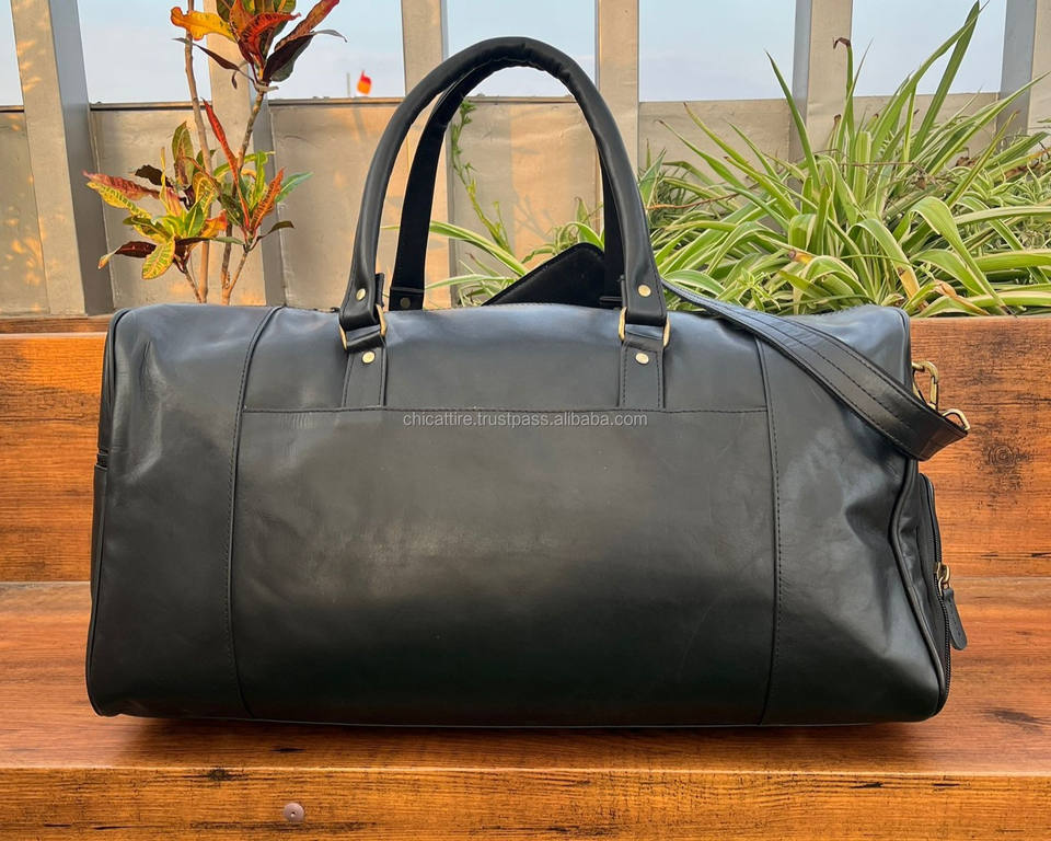 Custom Cowhide Overnight Luggage Full Grain Leather Weekender Duffle Bag with Shoe Compartment Genuine Leather Men's Travel Bag