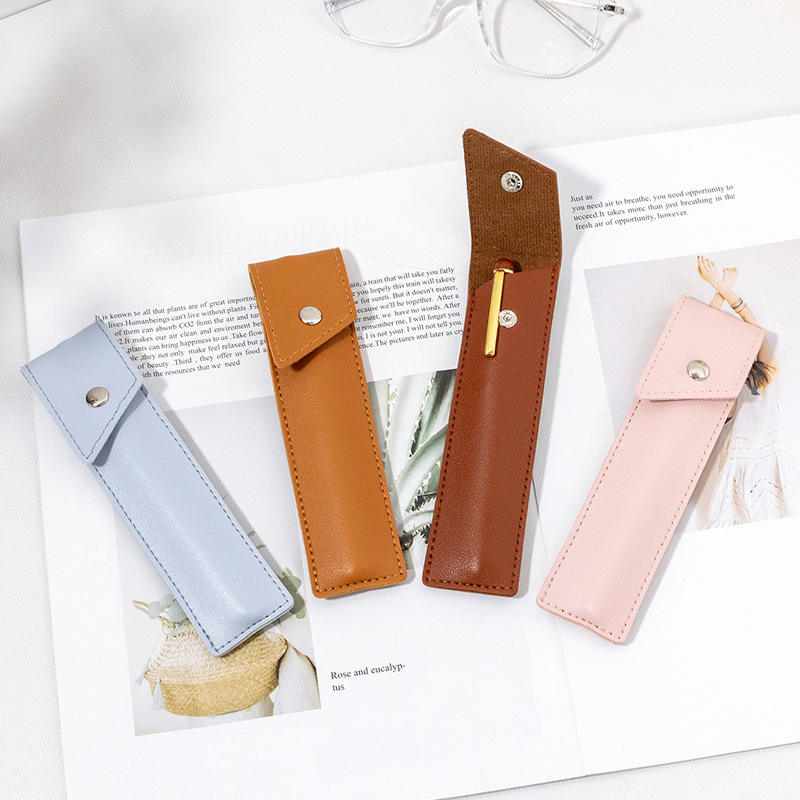 Custom Creative Single Case Pencil Pouch Man Woman Pu Leather Notebook with Pen Holder
