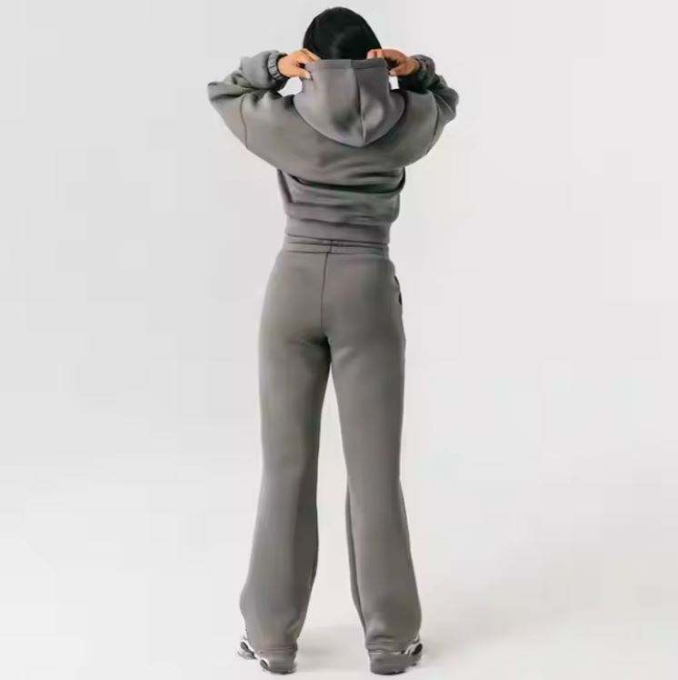 Custom Cropped Hooded Flare Pant Tracksuit Casual Sweatsuit Set Two Piece Set Women Clothing Sweatshirt and Sweatpants