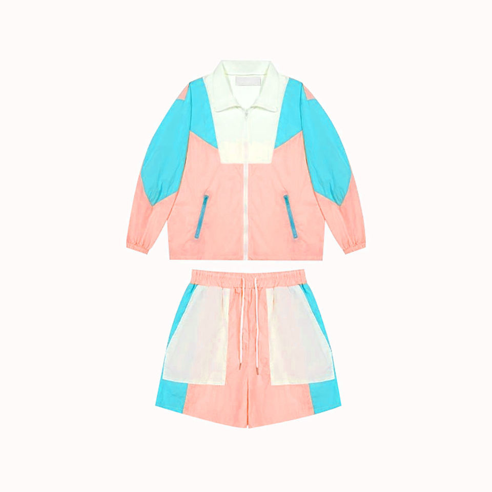 Custom Cropped Short Jacket Short Windbreaker Set Customized Summer Fashion Color Block Washed Casual Shorts Sets Women