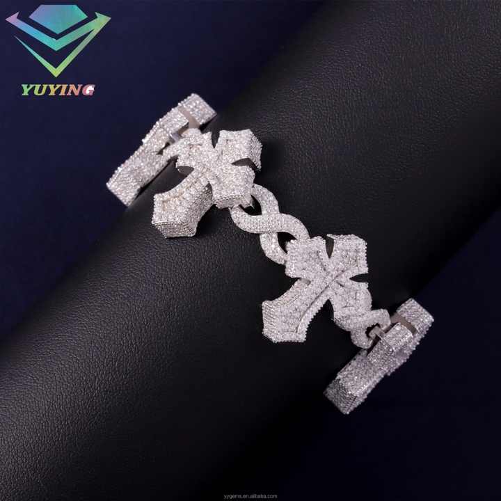 Custom Cross Charm Round Moissanite Diamond Bracelet Rapper Hiphop Jewelry Iced Out Moissanite Infinity Link Cuban Bracelet Men