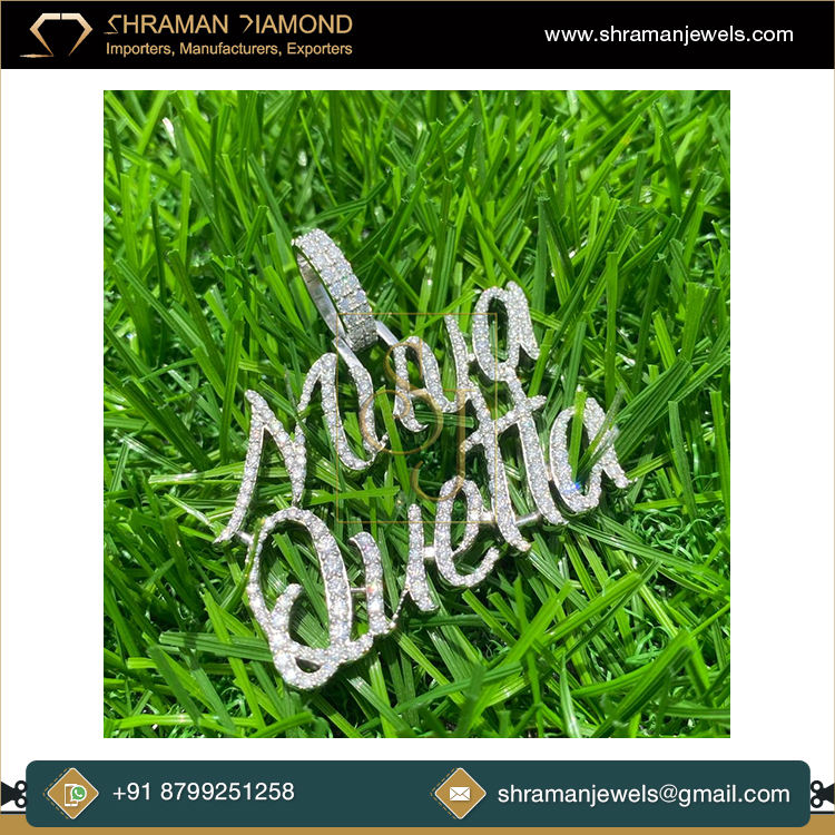 Custom Cursive Letter Name Pendant Silver Plated Lab Grown Diamond Necklace Unisex Gift for Birthday Anniversary Engagement