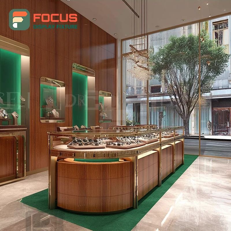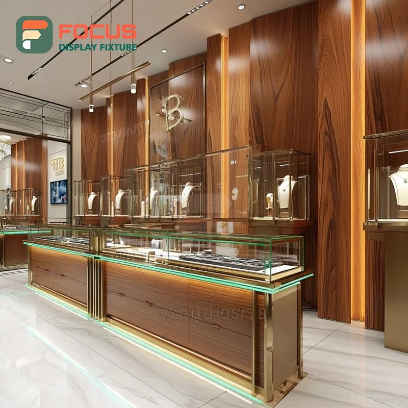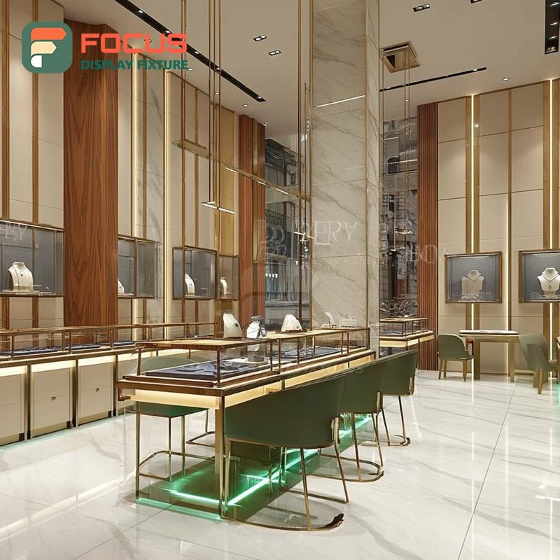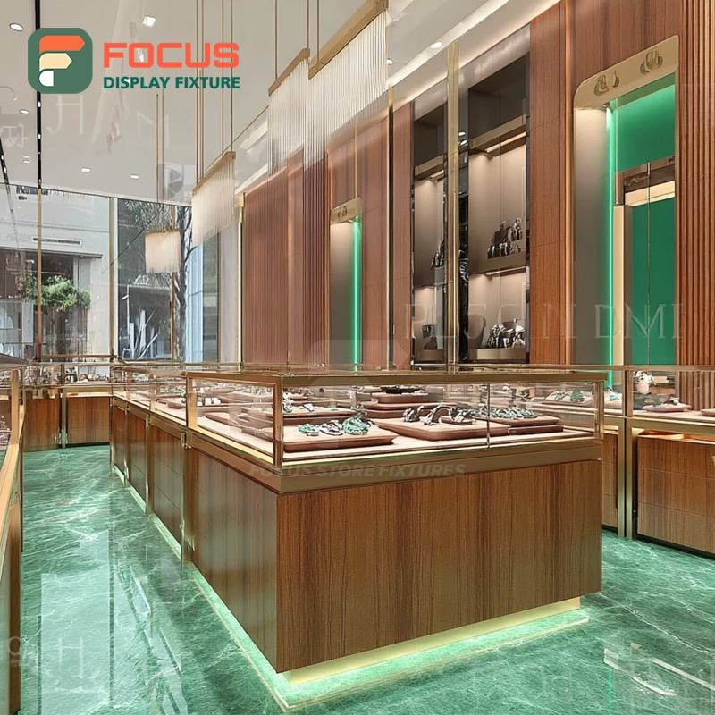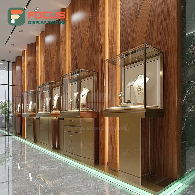 Custom Custom Jewelry Display System Manufacturer Polished Surface Boutique Space Glass Showcase