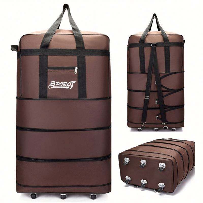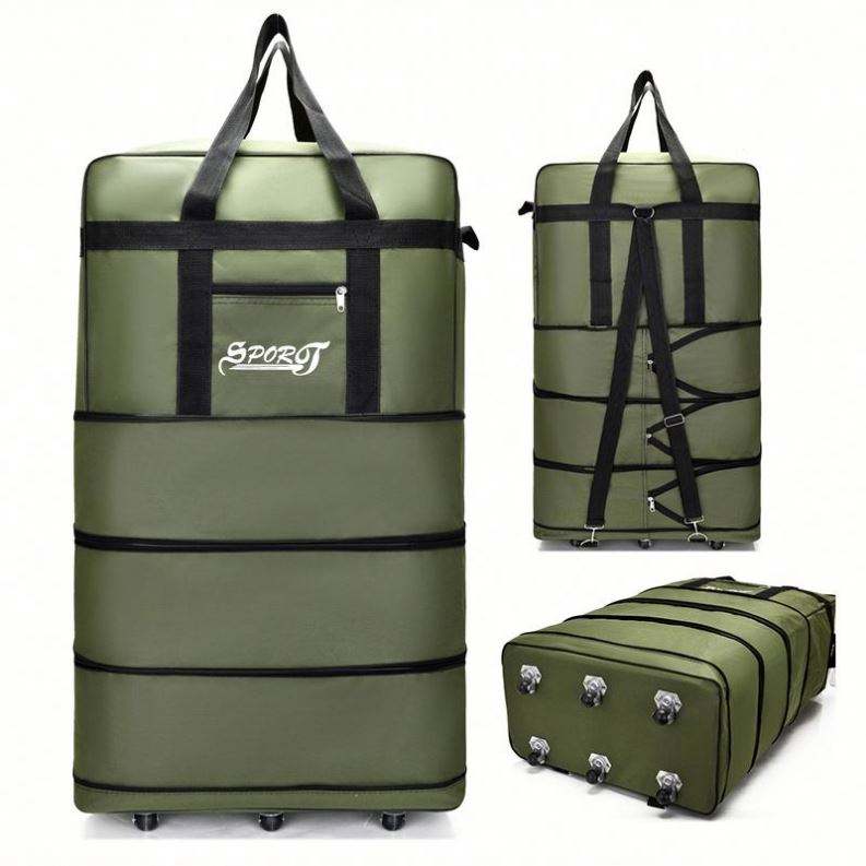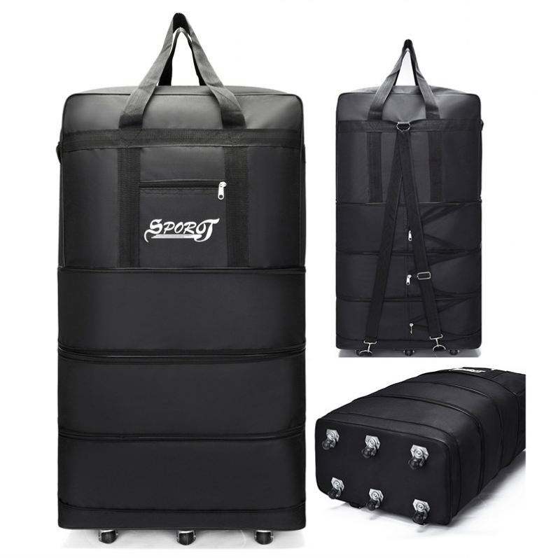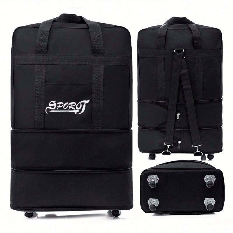 Custom Custom Logo Foldable Trolley Duffel Bag Large Capacity Waterproof Oxford Weekender with Wheels for Gym Travel