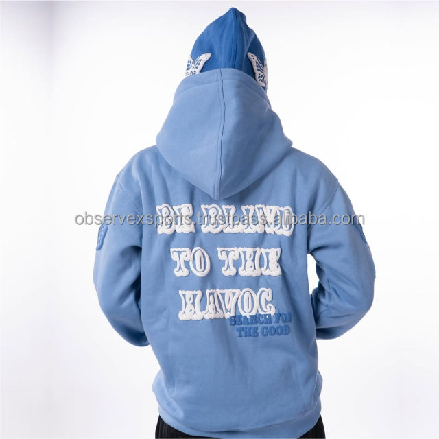 Custom Cut Edge Vintage Oversized Silk Screen Printing Winter Hooded Streetwear Stripped Heavyweight Cotton Flared Tracksuit Set