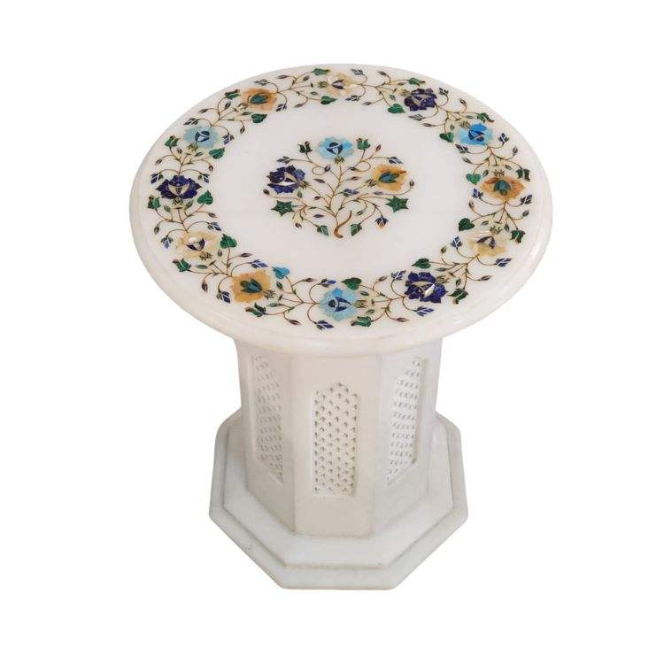 Marble Table Top with Elegant Handcrafted Wooden Stone Set Modern Inlay Design Easy Assembly for Living Room Decor