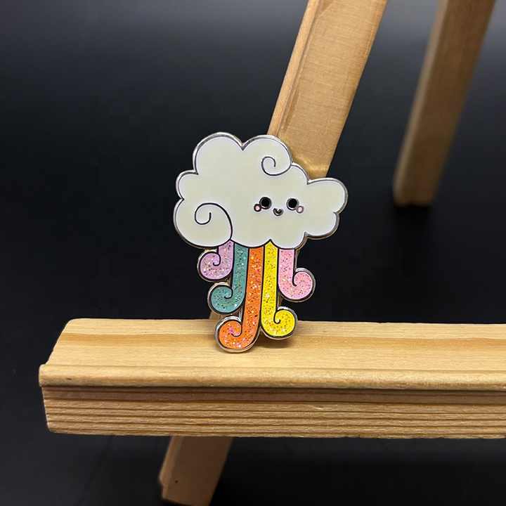 Custom Cute Cloud Shape Nickel Plated with Glitter rainbow Color Lapel Pin High Quality No Minimum Custom Lapel Pins
