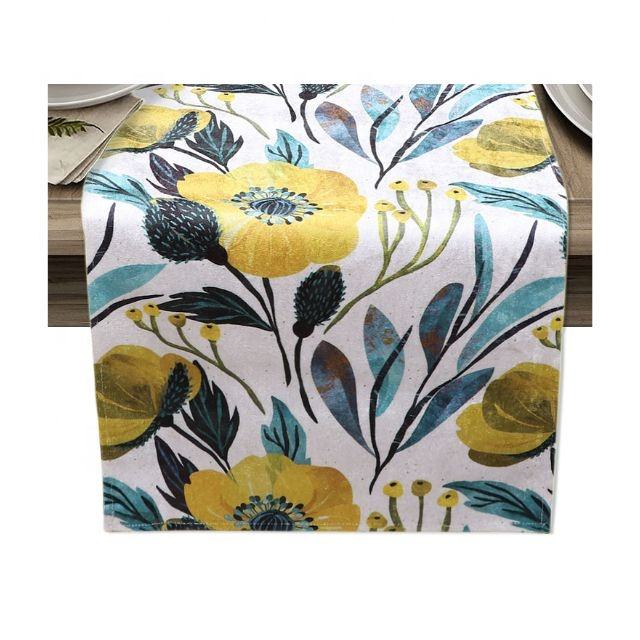 Custom Cute Green Sequin Luxury Wholesale Blended Cotton Rectangle Linen Grey Unique Dust Proof Floret Multi Use Table Runners