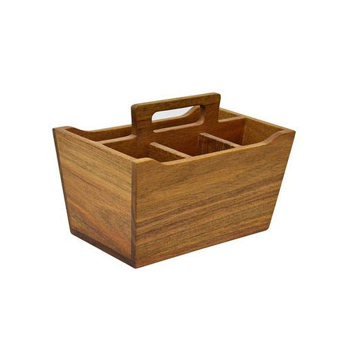 Custom Light Brown Bamboo Cutlery Table Organiser with Carrying Handle 4 Compartments for Beverages and Friends Storage